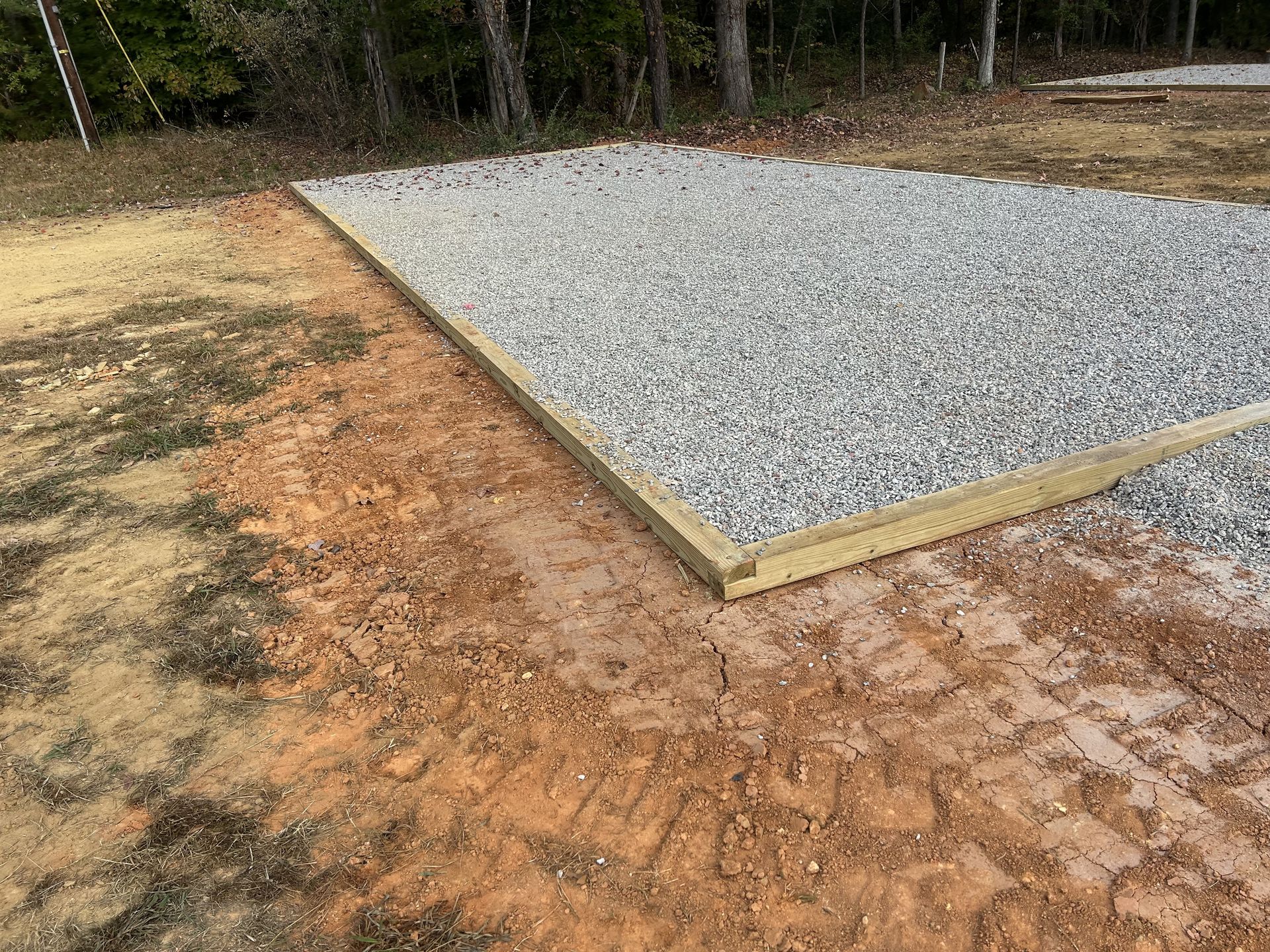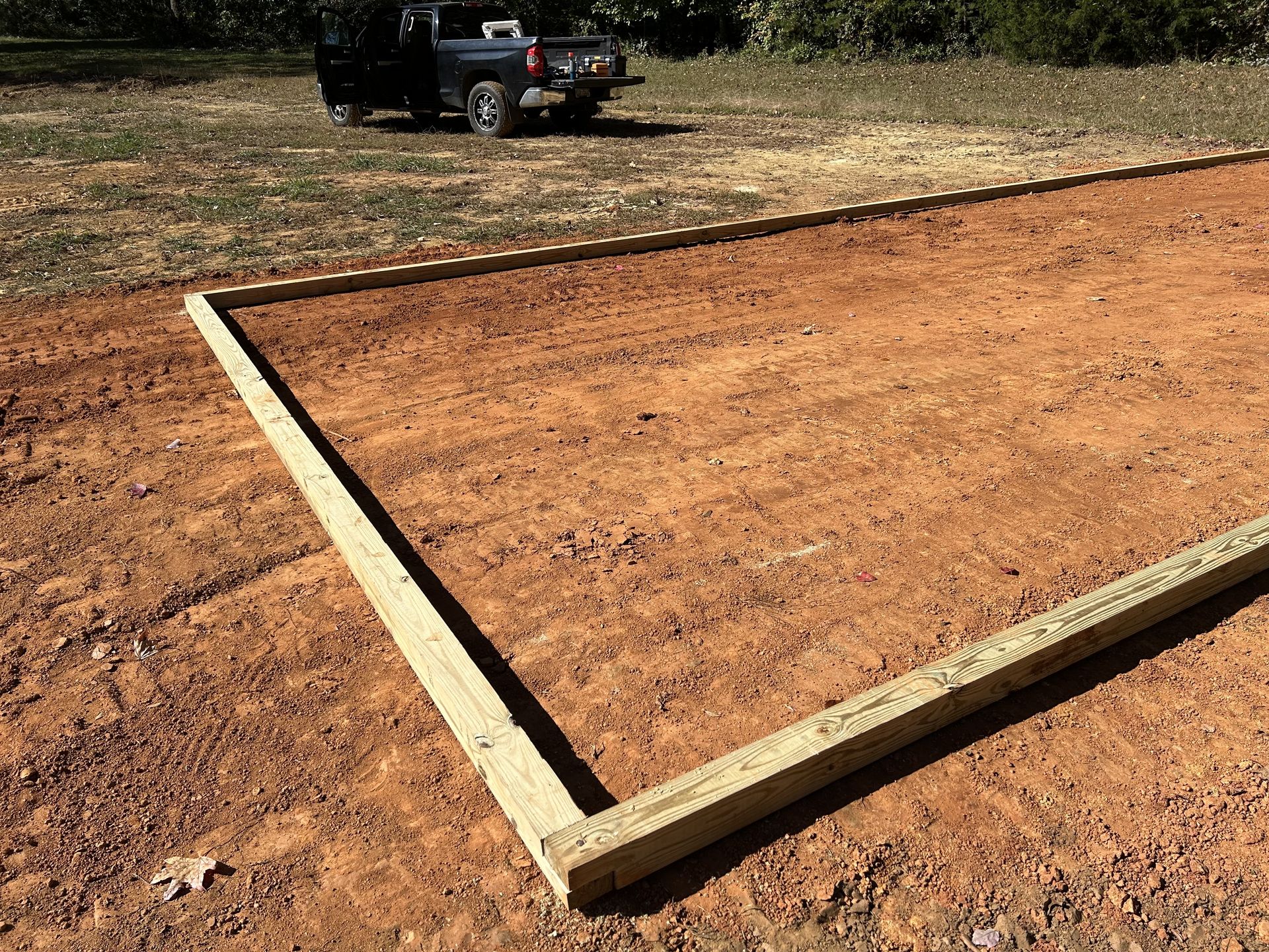 For curb appeal and retaining the gravel base, we add a wooden frame around the pad. Your gravel pad is now ready to support your shed, providing a sturdy, well-drained foundation for your she shed, he shed, or starter apartment.